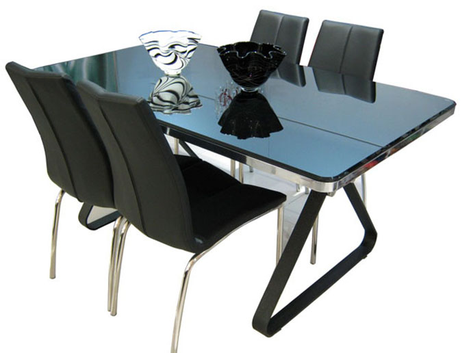 Table material: Cold-rolled steel tube black powder coated finish, 12 mm tempered black glass table top, with stainless steel edge