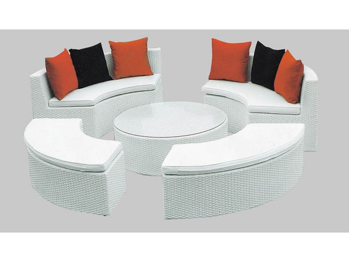 Material: Steel frame inside, outside is wicker, cushion inside is hight density surface is fabric